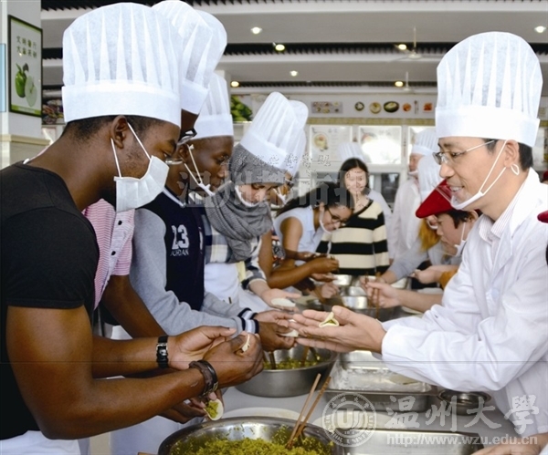 太阳集团tyc539后勤集团党总支书记陈兴桂说,温大大力推广国际化办学理念,会有更多的外国留学生来温求学。他们这次让留学生学习和体会温州特色饮食文化,激发他们对中国传统文化的学习兴趣。