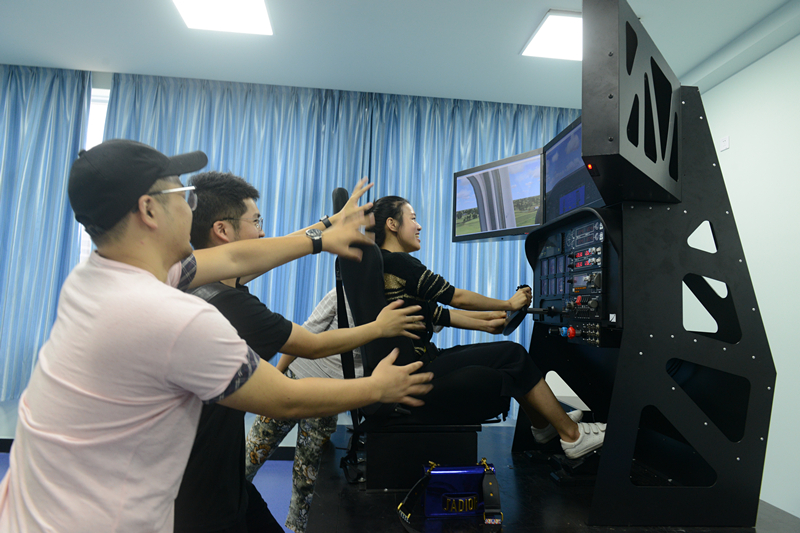 最后,与会校友一起参观了学院一楼的通用航空飞行学院航空虚拟仿真实验室和模拟飞行CBT实验室。校友们一边赞叹,一边在学弟学妹的指导下体验在模拟机上“飞”一样的感觉。希望校友们的事业和学院的发展也像起航的飞机一样,平稳向前,一路攀升,越来越好!