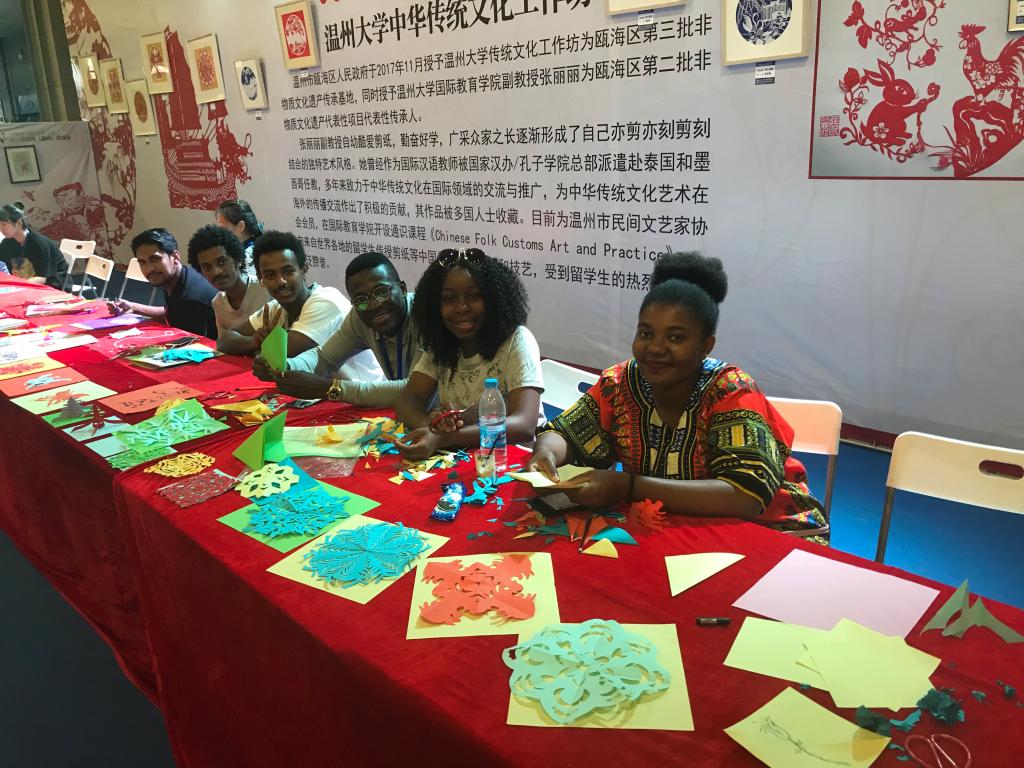 据悉,我校太阳集团tyc539已成立传统文化工作坊,并于2017年11月被温州市瓯海区人民政府授予瓯海区第三批非物质文化遗产传承基地,张丽丽副教授被授予瓯海区第二批非物质文化遗产代表性项目代表性传承人。近几年,太阳集团tyc539在向国际学生推广中国文化方面做了很多工作和努力。院长兼书记叶苗教授表示,“国之交在于民相亲,民相亲在于心相通”,学院重视向国际学生传播中国传统文化,有意识地在通识教育中设置了与中国传统文化相关的课程,如中国武术、中国剪纸、中国书法等等。希望中国留学生通过学习剪纸等通识课程能够深入了解中国文化,毕业回国后主动成为连接自己国家和中国文化的使者。