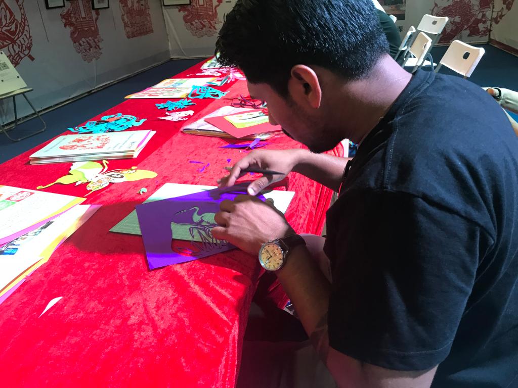 本次参展的是来自孟加拉国、坦桑尼亚、埃塞俄比亚、津巴布韦、也门、尼日利亚等国家学生的作品,不仅有中国传统剪纸,还有体现异域风情的绘画。孟加拉国籍学生Roy Joy说,剪纸特别有意思,有一种无法抵挡的魅力,通过这段时间的学习,不仅学会了中国剪纸,了解了中国传统文化,也在剪纸作品中融入了孟加拉的元素,这种交流与互鉴是搭建世界文化理解、缔结友谊的纽带和桥梁。