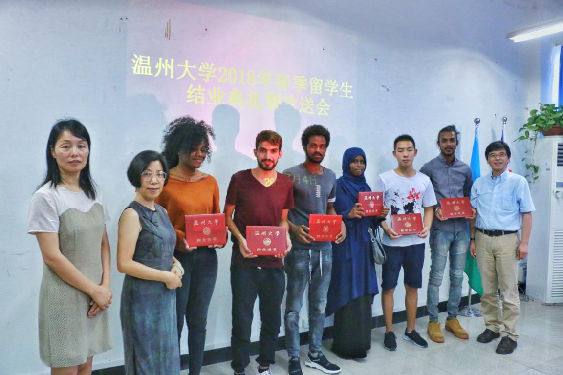 叶苗、陈军、陈文远分别为到场的33位结业学生颁发了结业证书和纪念品。叶苗分别为乌干达籍语言生MBAZIIRA HENRY、泰国籍语言生INTAVAREE MISS CHITCHANOK 颁发了校友联络员证书。最后,叶苗作总结讲话。她代表学院(留管部)对语言生顺利结业表示祝贺,并对他们所取得的进步表示肯定。她说,“在温大学习的每一天都会给你们留下了成长的印记,你们也给温大留下了深刻的印象。你们的名字将永远留在太阳集团tyc539的校友名录中”。她指出,学习汉语给同学们赋予了外语的力量,有双语和多语能力的人比起单语的人更有优势,有更好的跨语言跨文化交际能力和更开阔的国际视野,同时,她希望同学们为自己所学的外语赋予更强的力量,做更多更有意义的事情,成为自己国家与中国文化交流的友好使者,为两国之间的经济、文化发展做出自己的贡献。最后,她表示,“太阳集团tyc539欢迎你们常回来看看,太阳集团tyc539是你们永远的家。”