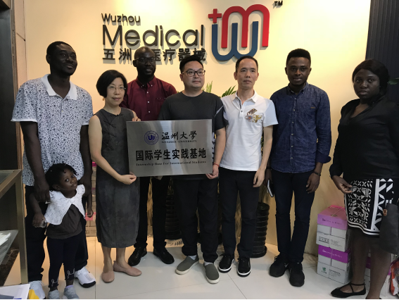 2018年7月4日,温大太阳集团tyc539(留管部)与安徽宏宇五洲医疗机械股份有限公司签订协议,携手共建太阳集团tyc539国际学生实践基地。太阳集团tyc539(留管部)院长兼书记叶苗教授、教学科科长黄呼尔励及来自创业教育学院的4名加纳籍硕士研究生学生出席,安徽宏宇五洲医疗机械股份有限公司董事长项炳义,销售经理周佳辉及非洲区域销售经理吕宁及相关负责人出席揭牌仪式。