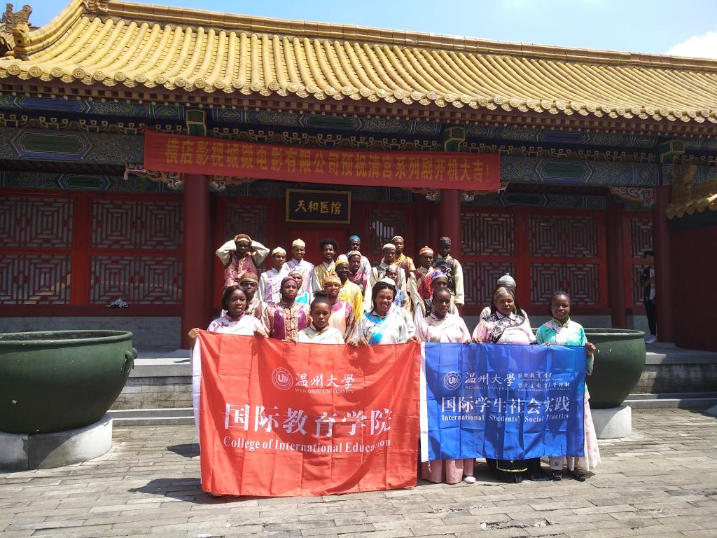 横店影视城位于浙江省金华市东阳市横店镇,作为国家5A级景区,建有广州街、香港街、明清宫苑、秦王宫、清明上河图、华夏文化园、明清民居博览城、梦幻谷、屏岩洞府、大智禅寺等14个跨越几千年历史时空、汇聚南北地域特色的影视拍摄基地。先后荣获“国家卫生镇”、“全国文明镇”、第一批中国特色小镇等20多项国家级、省级荣誉称号。短短两天时间,国际学生们分别参观了广州街、香港街和明清宫苑等拍摄实景基地,观赏了虎门销烟和梦幻太极等经典节目,体验了《乾隆下江南》微电影拍摄片段。