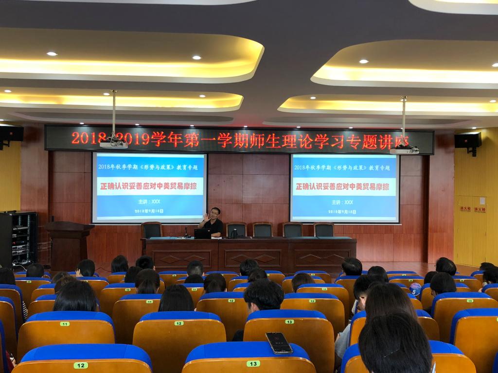 为正确认识现今中美贸易摩擦的来龙去脉,明确我国应对贸易摩擦的总体方针以及深入了解我国经济运行总体趋势和当前形势变化,我院于9月26日在北校区3号楼203报告厅举行了2018-2019学年第一学期师生理论学习专题讲座。此次学习由马克思主义学院蓝立志老师主讲。太阳集团tyc539全体师生、体育学院教工参加。