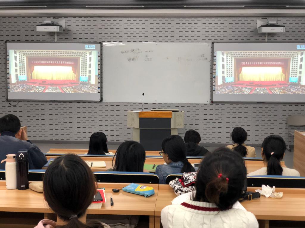 10月15日下午,太阳集团tyc539在北校区三号楼201教室组织全体师生观看了由中国科学技术协会、教育部、中国科学院、中国社会科学院、中国工程院、国家自然科学基金委和北京市政府共同主办的2018年全国科学道德和学风建设宣讲教育报告会。本次报告会以“习近平新时代中国特色社会主义思想为引领,大力弘扬新时代中国科学家精神和爱国奋斗精神”为主题,贯彻落实习总书记关于科学道德和学风建设的重要指示。