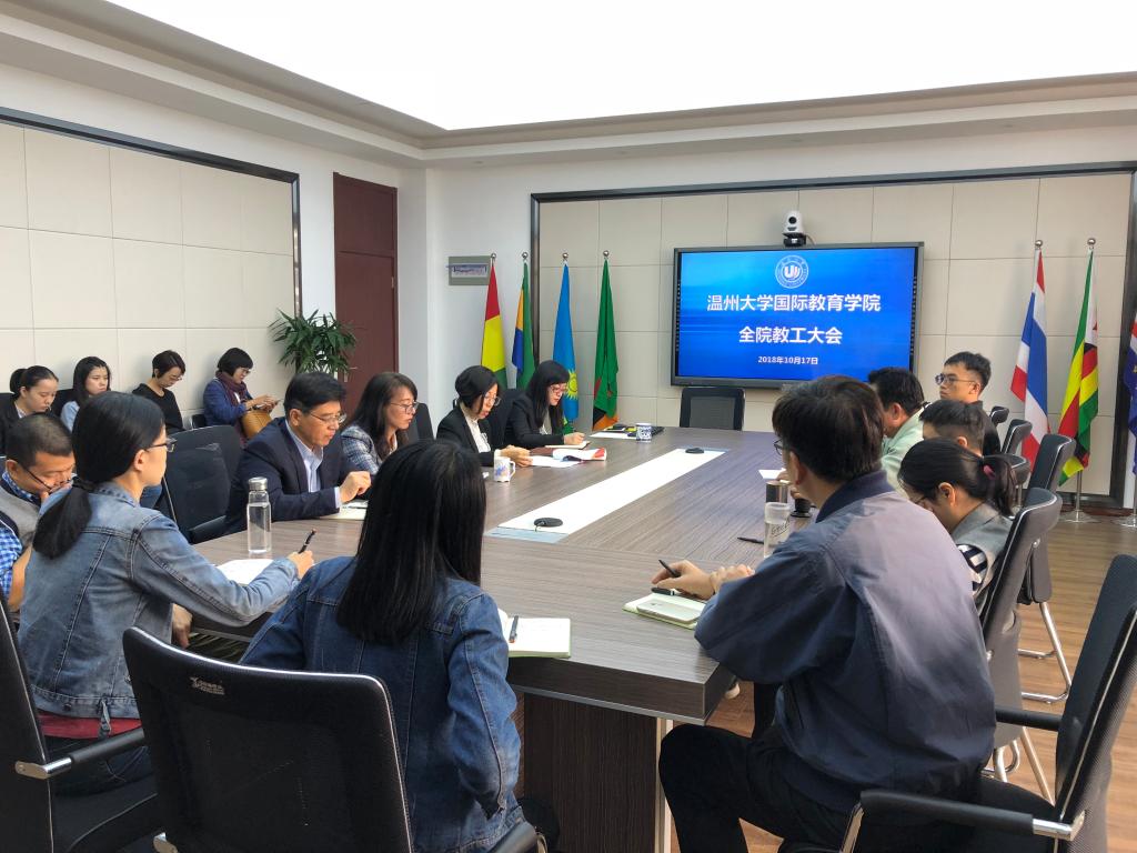 10月17日下午,太阳集团tyc539全体教职工大会在国际楼三楼召开,太阳集团tyc539院长兼党总支书记叶苗主持发言。