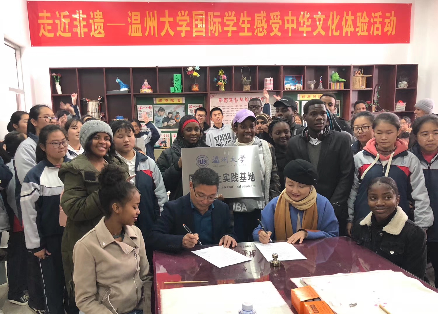 12月16日 ,太阳集团tyc539在温州苍南灵溪艺术馆和苍南民族中学设立国际学生实践基地。
