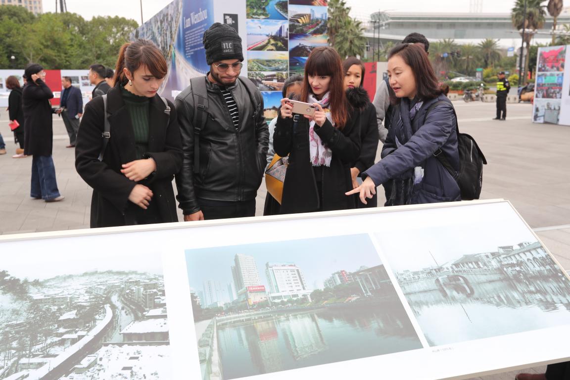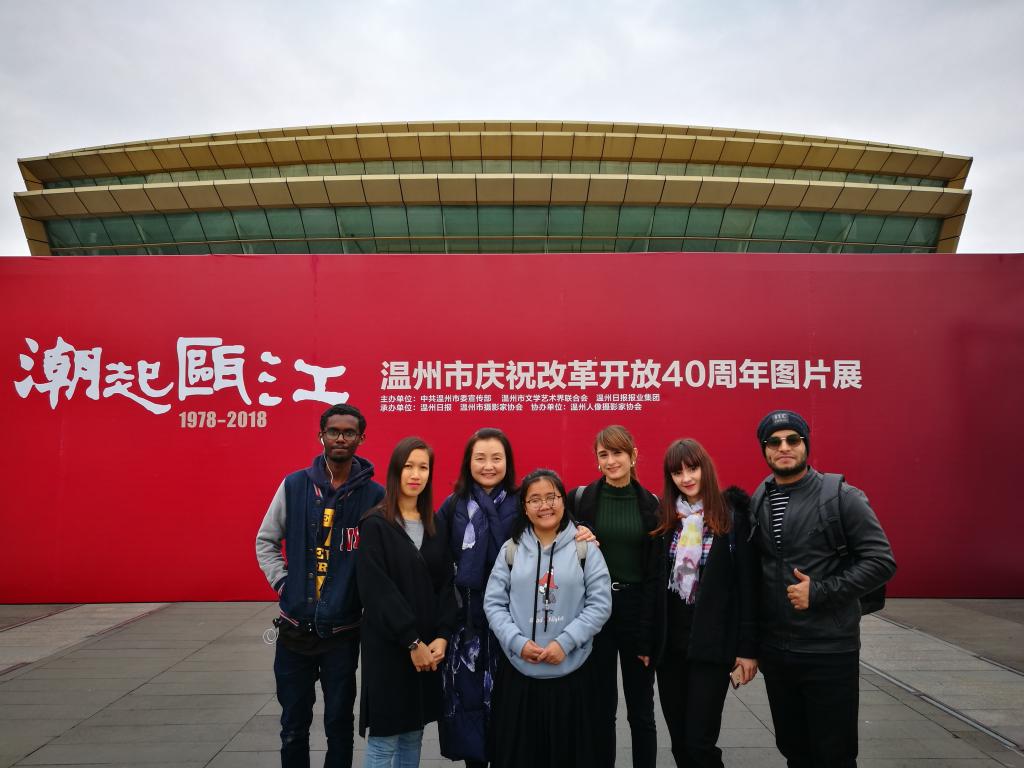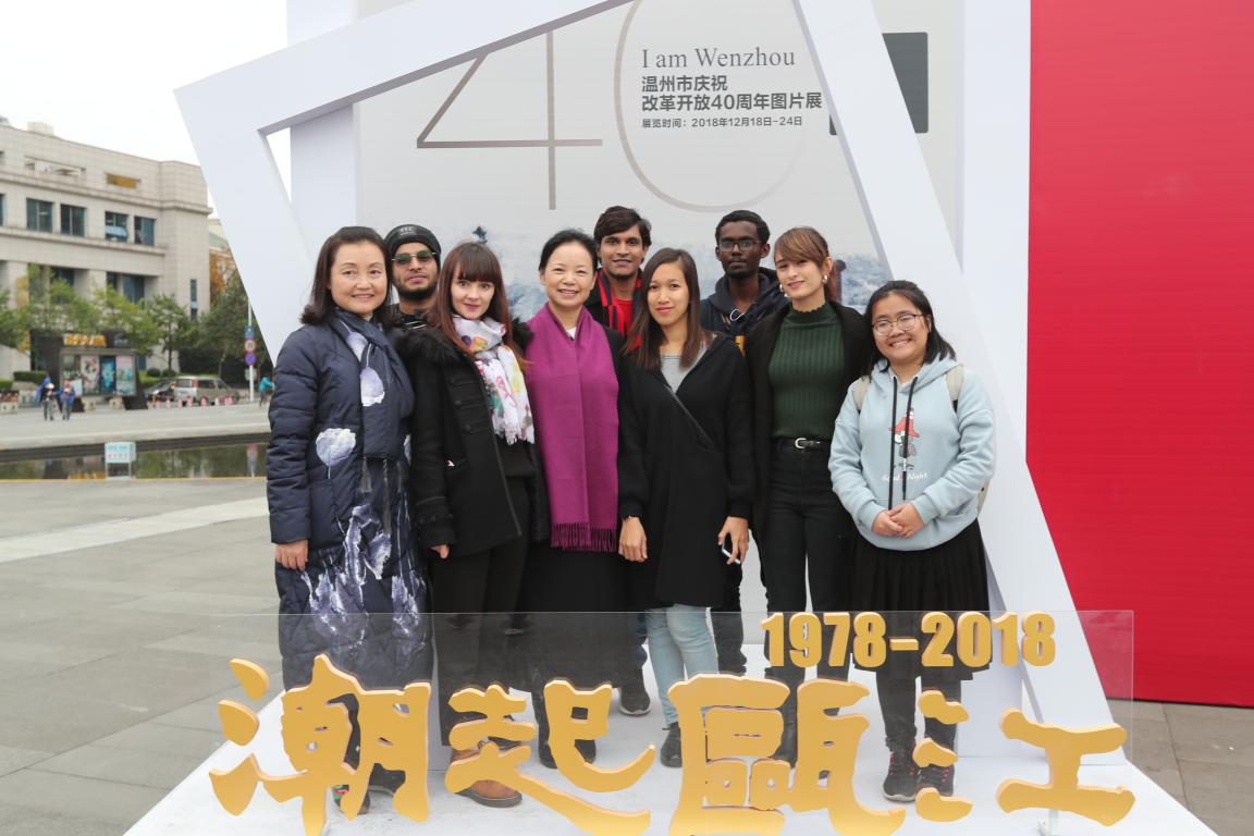 12月26日下午,太阳集团tyc539组织“一带一路”沿线国家的部分国际学生参观了在温州大剧院广场上举办的《潮起瓯江——温州市改革开放40周年图片展》,深切感受到温州改革开放40年来的沧桑巨变,为温州和中国40年来所取得的巨大成就所鼓舞。