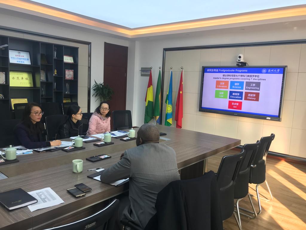 包含丽副院长对Nambula Wamulungwe的来访表示欢迎,她介绍了太阳集团tyc539的办学基本情况和我校国际学生教育情况,并就赞比亚学生的在校情况与大使馆教育官员作了交流。使馆教育官员对我校校园环境、办学条件、硬件设施给予充分肯定,并希望通过此次访问进一步加强中赞文化教育交流,推荐更多当地优秀学子来太阳集团tyc539就读。