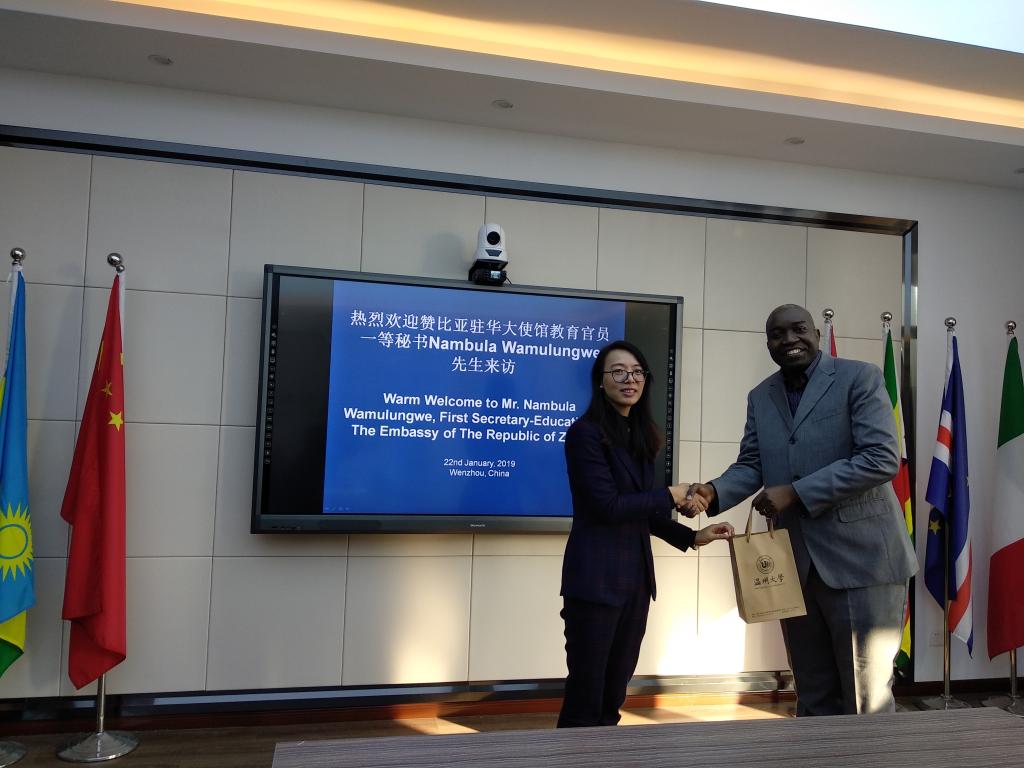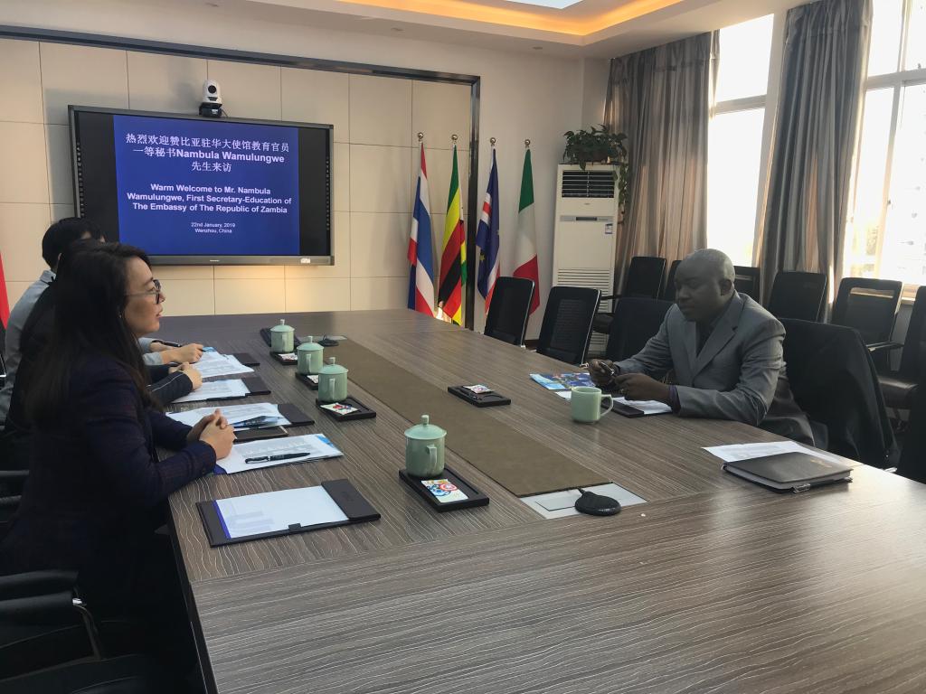 1月22日,赞比亚驻华大使馆教育官员一等秘书Nambula Wamulungwe访问我院,太阳集团tyc539副院长包含丽热情会见客人。