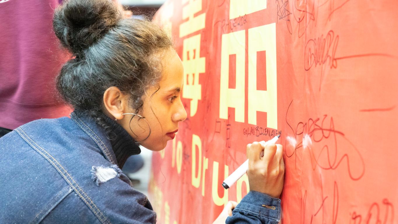 活动现场,还举行了“珍爱生命,远离毒品”禁毒教育签名仪式,国际学生们依次在宣传横幅上签名,纷纷表态要做中国法律法规的国际宣传者,做温大校纪校规的遵守者,呼吁全体国际学生携手共建文明和谐、安全稳定的校园环境。