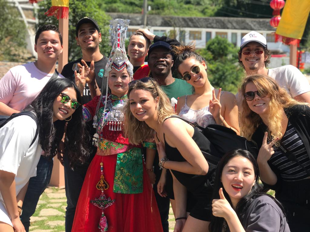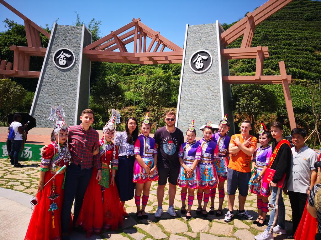 茶文化教学实践活动分为上午和下午两部分。上午,学生首先观看了新联村畲族热情洋溢的竹竿舞表演,之后学生在茶学博士—董占波的带领下有序游茶山,采摘茶叶,进行炒茶体验,了解茶文化。下午,全体语言生参观了子久茶博苑,观看了茶艺表演,学习泡黄汤品黄汤,学生积极参与,热情极高,对中国的茶文化有了深入的了解。随后,全体语言生在温州诗词楹联学会书法专家的指导下,学习书法,并获得了专家的书法作品馈赠。