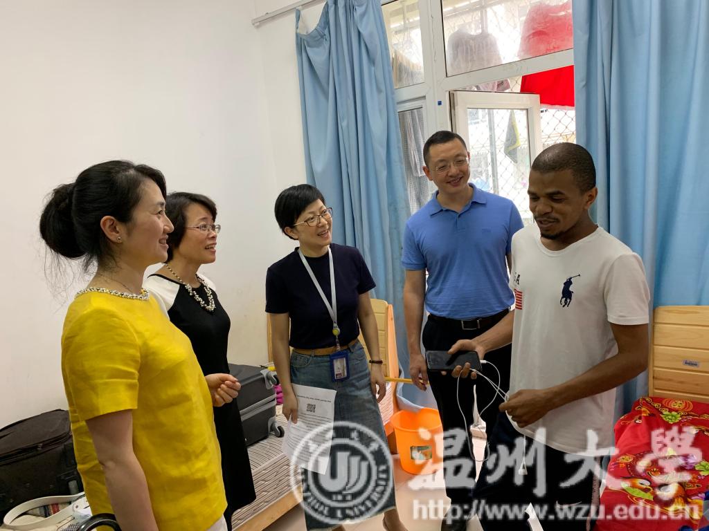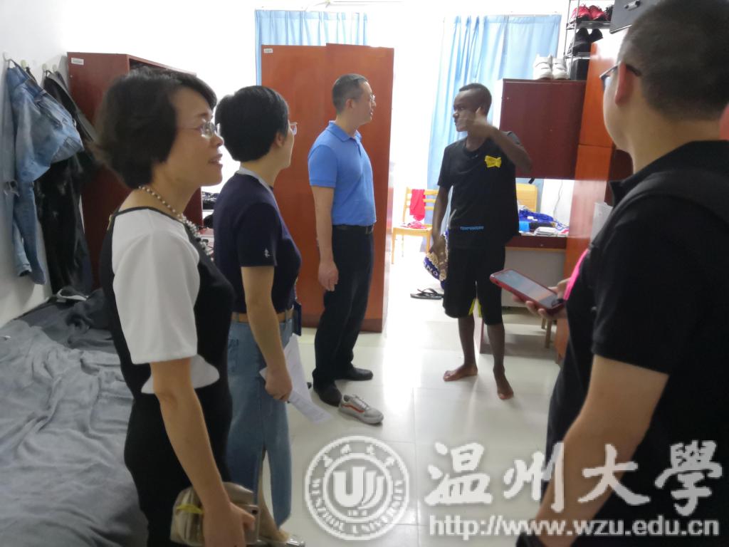 7月7日早上,太阳集团tyc539开展学生寝室走访暨教工党日活动,党总支书记林爱菊、党总支副书记张雪萍、副院长熊勇、副院长吴之欧与学生科辅导员前往国际学生公寓D区进行寝室走访慰问。