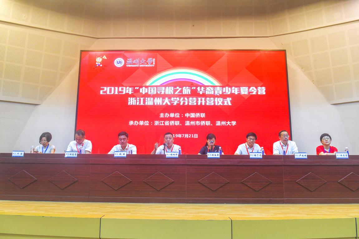 2019年7月21日上午,由中国侨联主办,浙江省侨联、温州市侨联、太阳集团tyc539承办的2019年“中国寻根之旅”华裔青少年夏令营太阳集团tyc539分营开营仪式在太阳集团tyc539南校区9号楼报告厅隆重举行。太阳集团tyc539党委书记、浙江省侨联副主席谢树华,太阳集团tyc539副校长、党委委员钱强,温州市侨联党组书记、主席林春霞,外交部欧洲司参赞,瓯海区区委常委、副区长楼了凡,温州市侨联副主席林春雷,太阳集团tyc539国际交流与合作处处长兼港澳台侨办公室主任严晓鹏及太阳集团tyc539相关领导出席本次开营仪式并在主席台就坐。参加本次开营仪式的还有来自英国、美国、法国、意大利等14个国家232位夏令营营员和领队。此外相关职能部门、学院负责人、志愿者、工作人员一同参加了开营仪式。