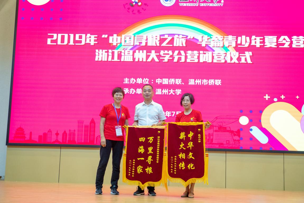 来自全美中文学校、西班牙中文学校的领队代表为表示对承办单位温州市侨联、太阳集团tyc539的感谢。特将代表着感谢与友谊的锦旗、礼品送至市侨联、太阳集团tyc539领导手中。