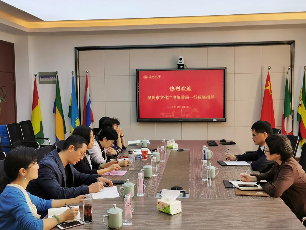 11月5日,温州市文化广电旅游局副局长李方喜、温州市文化广电旅游局文旅市场拓展处金素一行来访我院。