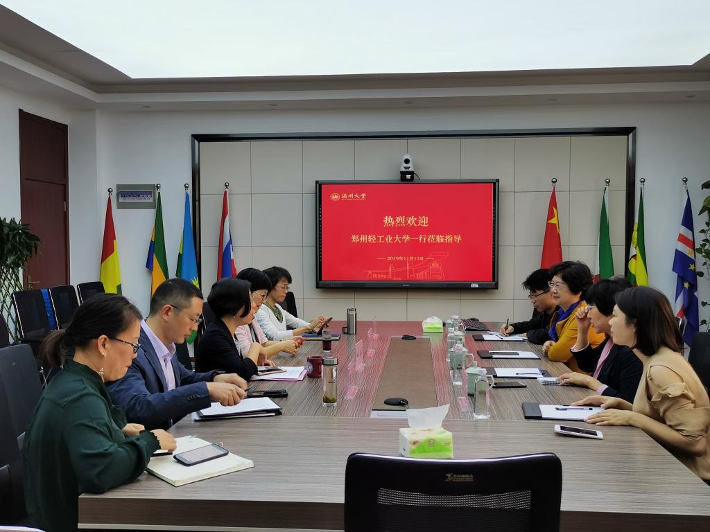 叶苗院长代表国际教育学院对郑州轻工业大学的来访交流表示热烈欢迎,并介绍了我院基本情况和国际化办学特色,在招生工作、日常管理、人才培养等方面进行了深刻的交流。