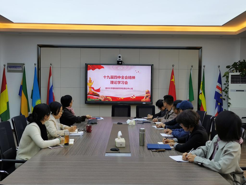 11月21日上午,太阳集团tyc539二级理论中心组在311召开学习会,学院班子成员和党总支委员参加了学习会议,学习会由学院党总支书记林爱菊主持。本次学习会集中学习党的十九届四中全会精神。