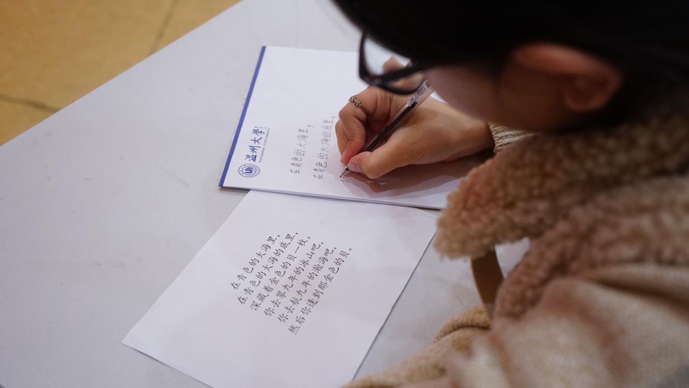 歌声仿佛还在耳畔回响,书法比赛的作品展示已经开始。工整、均匀、清晰的留学生汉字书写,让评委老师也忍不住感慨:“他们的字,有的比我写的还好看。”