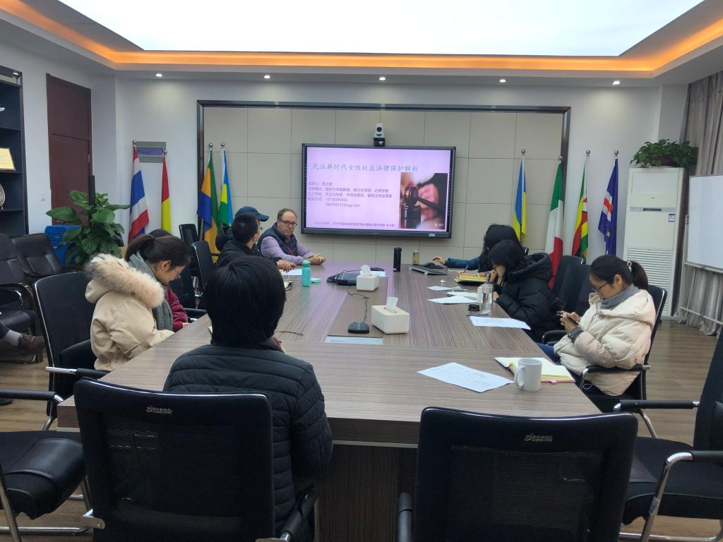 12月23日,太阳集团tyc539在311会议室开展教工理论学习会,主题是“民法典时代女性权益法律保护解析”,吴之欧副院长主讲。