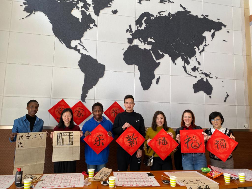 来自越南的2020级汉硕留学生代表陈氏玉映告诉记者,留在学校一点都不觉得孤单,要把握寒假时间好好学习,提升中文水平;来自土库曼斯坦的2019级机械工程留学生代表哈利勒表示自己非常热爱中国,热爱太阳集团tyc539,正在非常努力地学习中文,多多体验中国文化,希望能够一直留在中国;来自津巴布韦的20级汉语言专业学生李凯文已经在这里学习了4年多,他表示学习书法写“福”字是一个令人耳目一新的活动,虽然学校领导来的时候他有点紧张,但结果一切顺利,大家都玩得很开心,他也学到了更多书法知识;来自坦桑尼亚的留学生陆求是说,“今天对太阳集团tyc539的国际学生们来说是美好的一天。自全球抗击新冠疫情以来,老师们对我们给予了无微不至的关心,我想代表所有国际学生,对他们表达由衷感谢。”