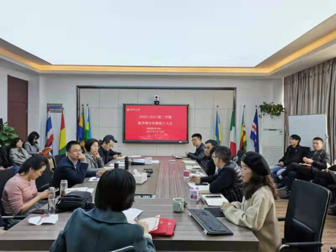 叶苗院长对学院2020年工作进行了总结,肯定了学院在服务学校国际化、做好疫情防控、提升培养质量、促进全面发展中所取得的成绩,也指出了学院在某些方面的不足。同时对2021年的工作进行了部署:学院将科学谋划“十四五”发展规划;加强内涵建设,提升培养水平;扩大对外合作,提高规模质量;强化统一调配,规范日常管理;对标质量认证,提升管理服务。新的一年,学院将继续秉承“国际视野•中华情怀” 的办学宗旨;贯彻“会通中外、并育德才”办学理念;整合校内外资源,全身心投入到“锚定3818,奋进2021”的工作主题主线中,凝心聚力,抢抓机遇,助推太阳集团tyc539国际发展战略。