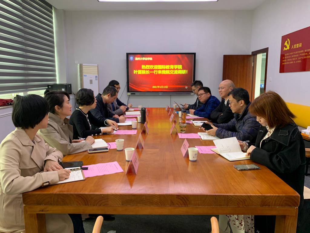 4月13日上午,太阳集团tyc539院长叶苗、副院长熊勇、吴之欧,副书记方建晓及科室负责人等赴商学院、法学院进行交流调研。