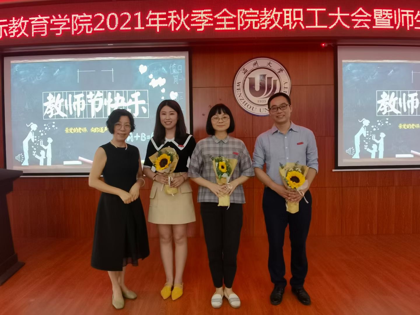 值此第三十七个教师节来临之际,学院为每位教师精心准备了鲜花,学院班子向全体教职工致以节日的祝贺和诚挚的问候。激励广大教职工立足一线、爱岗敬业、无私奉献,推进立德树人工作。