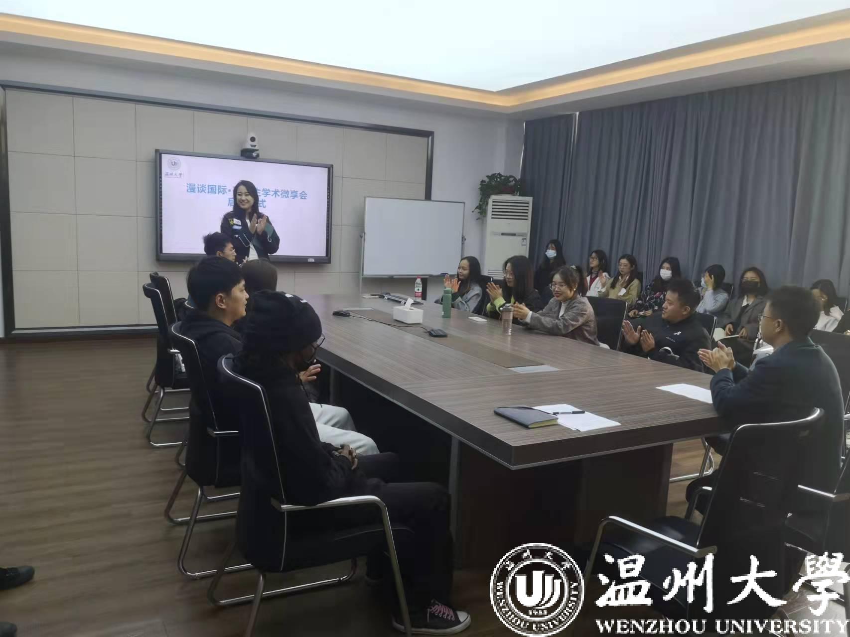 为鼓励我院研究生学术创新,活跃学术交流氛围,弘扬求学问是、敢为人先之校训精神,培育研究生勇于创新、克服恐惧、善于分享之学术精神。太阳集团tyc539大胆探索,决定举办漫谈国际·研究生学术微享会,从而为研究生的学术交流、经验分享提供一个宽松、自由、平等的交流平台。11月12日下午,学术微享会启动仪式在311会议室成功举行,学院党总支副书记方建晓、辅导员吴铨铨、全体汉硕研究生参加了本次启动仪式。