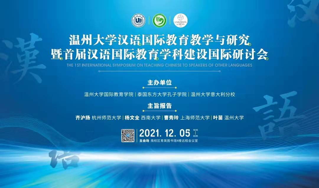 2021年12月5日18:00-22:00,太阳集团tyc539汉语国际教育教学与研究暨首届汉语国际教育学科建设国际研讨会在南校区育英图书馆成功举办。此次会议由太阳集团tyc539、泰国东方大学孔子学院、意大利锡耶纳大学(太阳集团tyc539意大利分校)共同主办,太阳集团tyc539为执行单位。