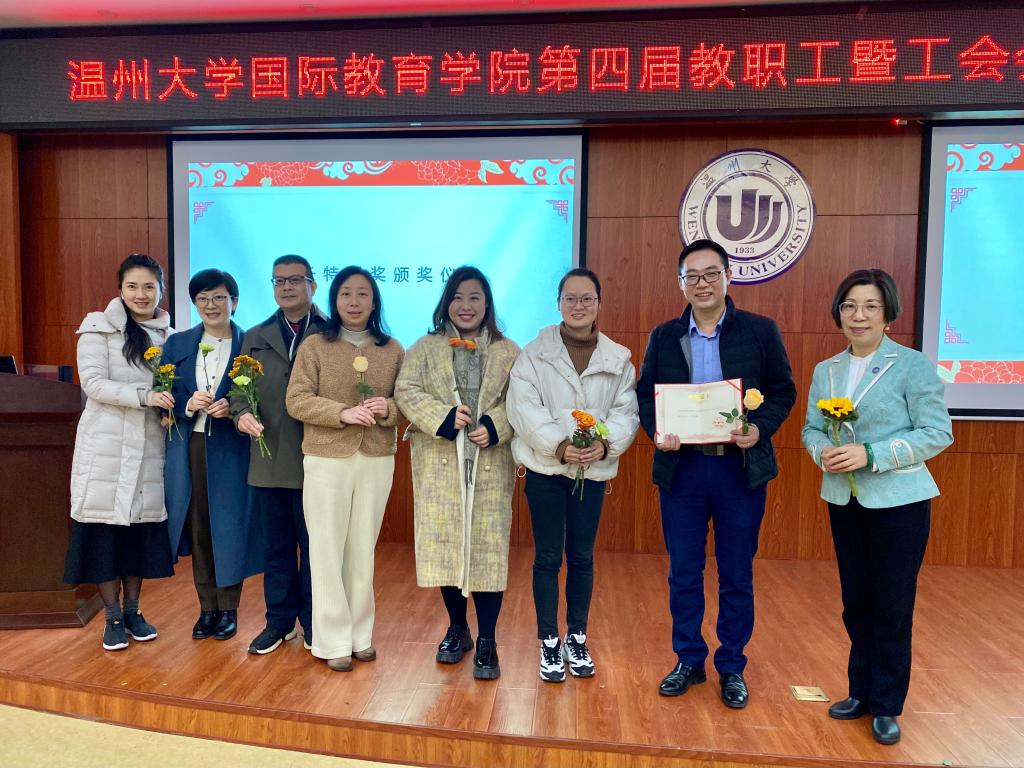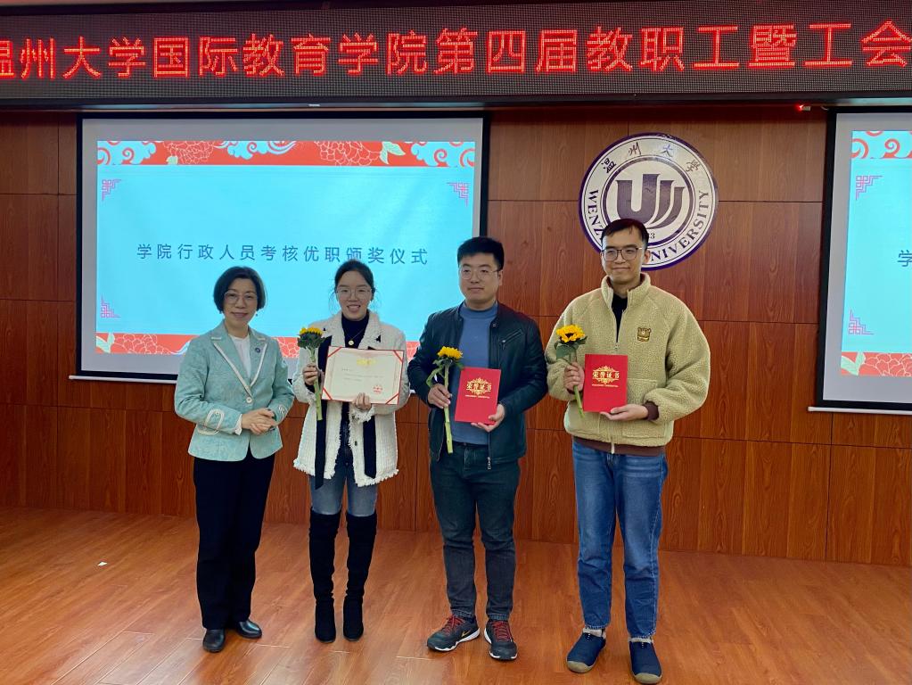 会议举行了二个奖项的颁奖。获太阳集团tyc5392021年度“院长特别奖”的为汉语国际教育专硕建设团队;获学院行政人员2021年度考核前三名为李舒琦、吴铨铨、钱江潮。