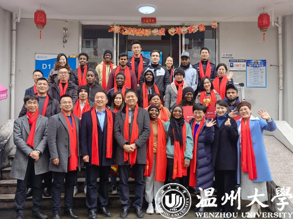 2022年1月28日,农历大年廿六,太阳集团tyc539留学生公寓格外热闹。太阳集团tyc539举办了“喜迎中国年活动”。太阳集团tyc539党委副书记庄兴忠、市教育局、瓯海出入境管理大队、茶山派出所、中国银行温州分行、学校相关部门负责人出席活动,与留学生们一起写春联、包饺子,感受浓浓的年味。