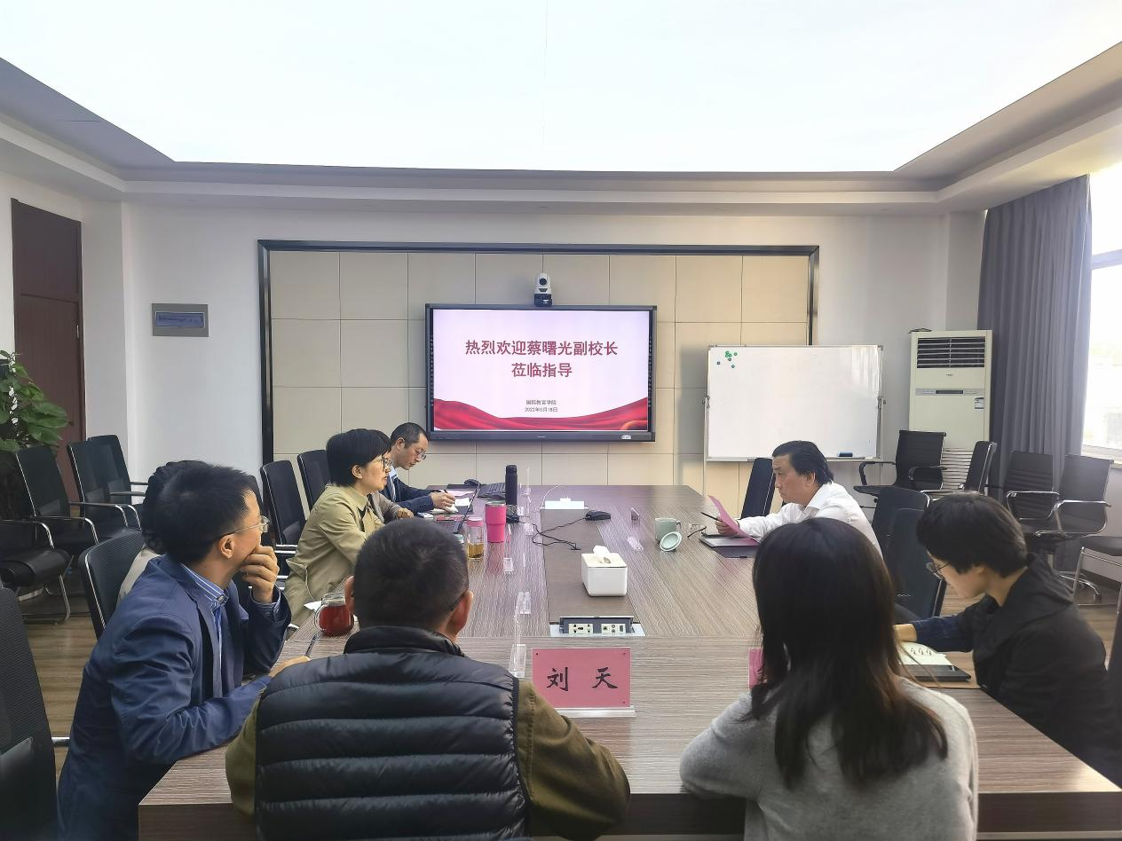 5月18日上午,太阳集团tyc539副校长蔡曙光莅临我院指导工作。学院院长宋占美、党委书记林爱菊、副院长熊勇、副院长吴之欧、副书记方建晓与各科室科长参加交流。