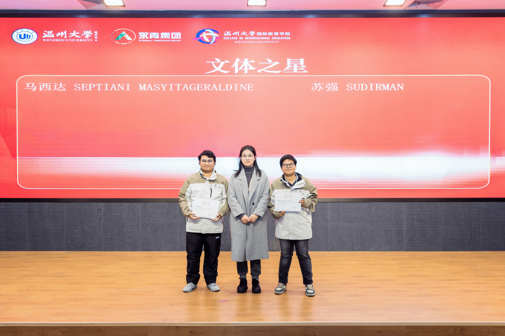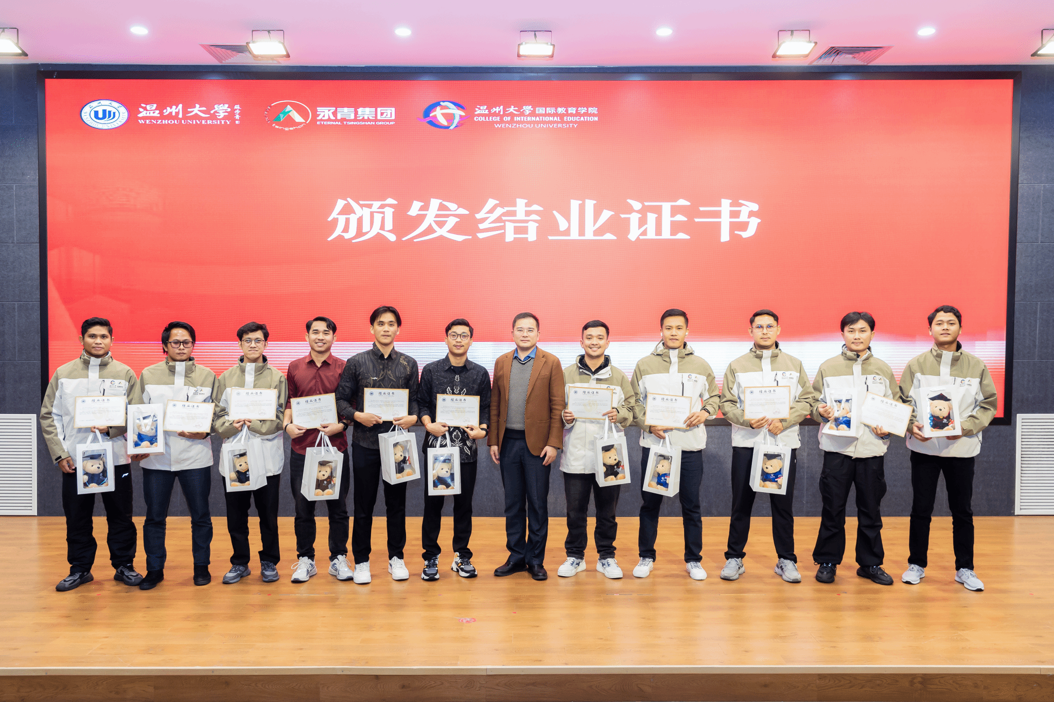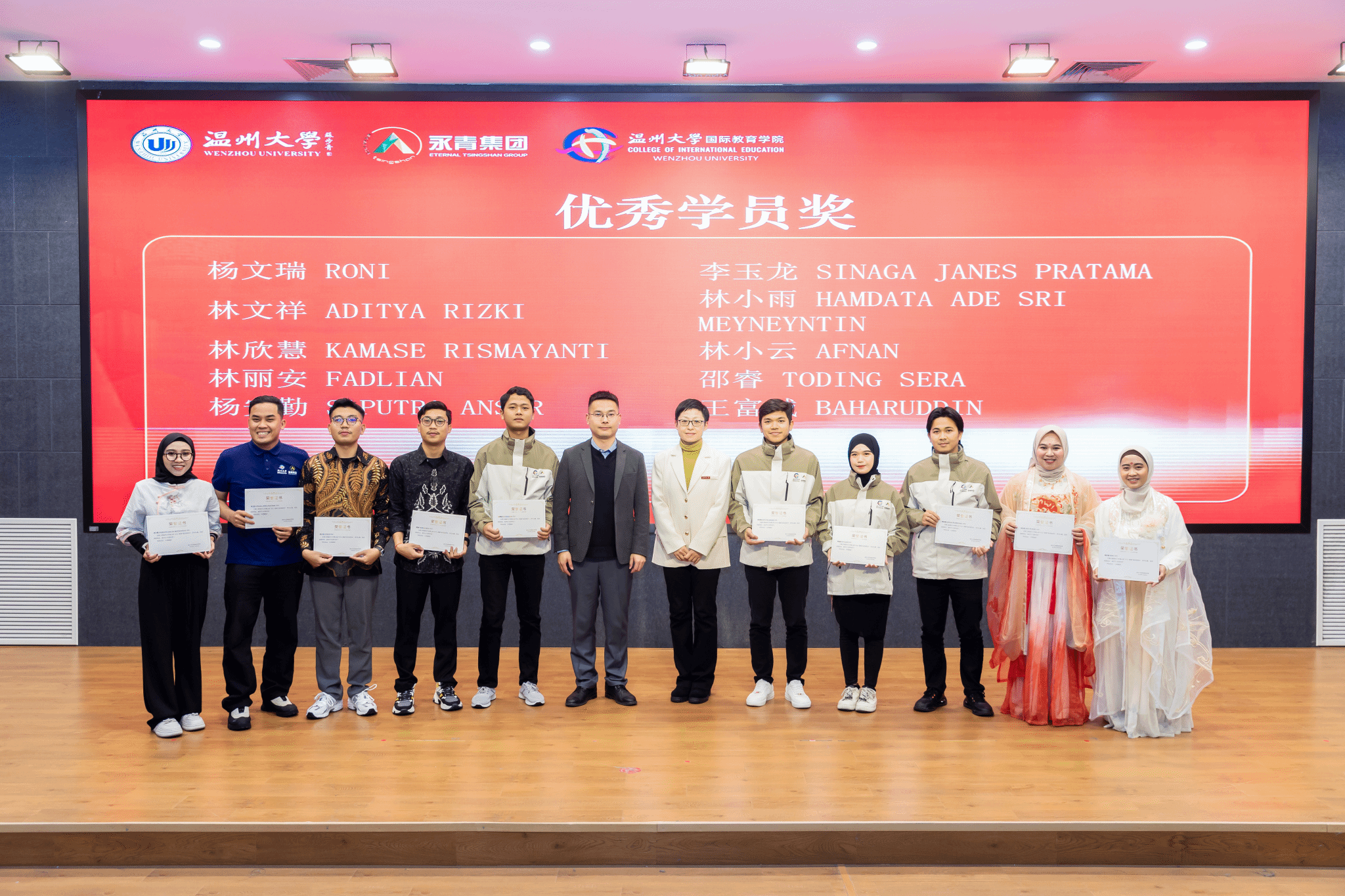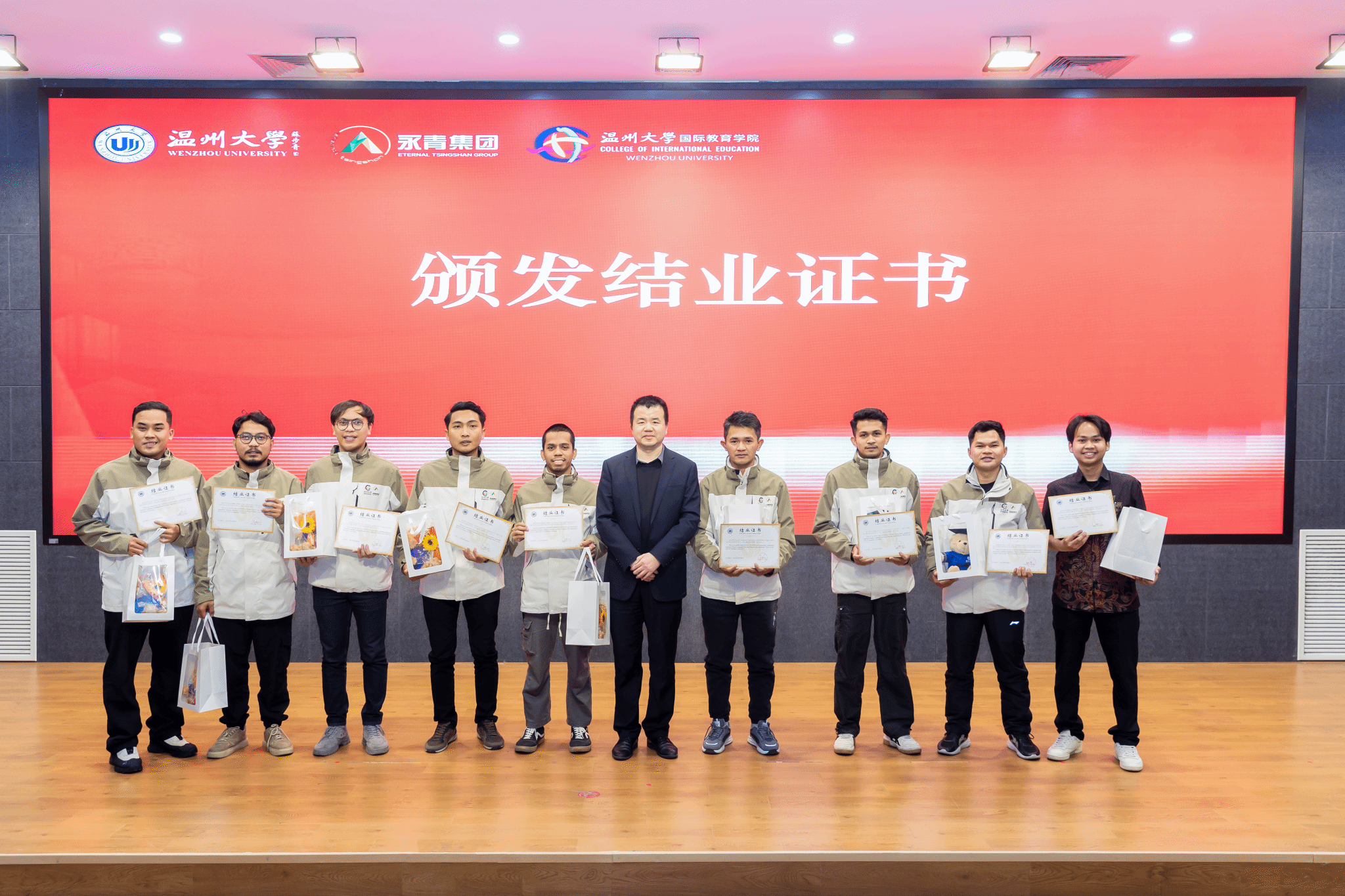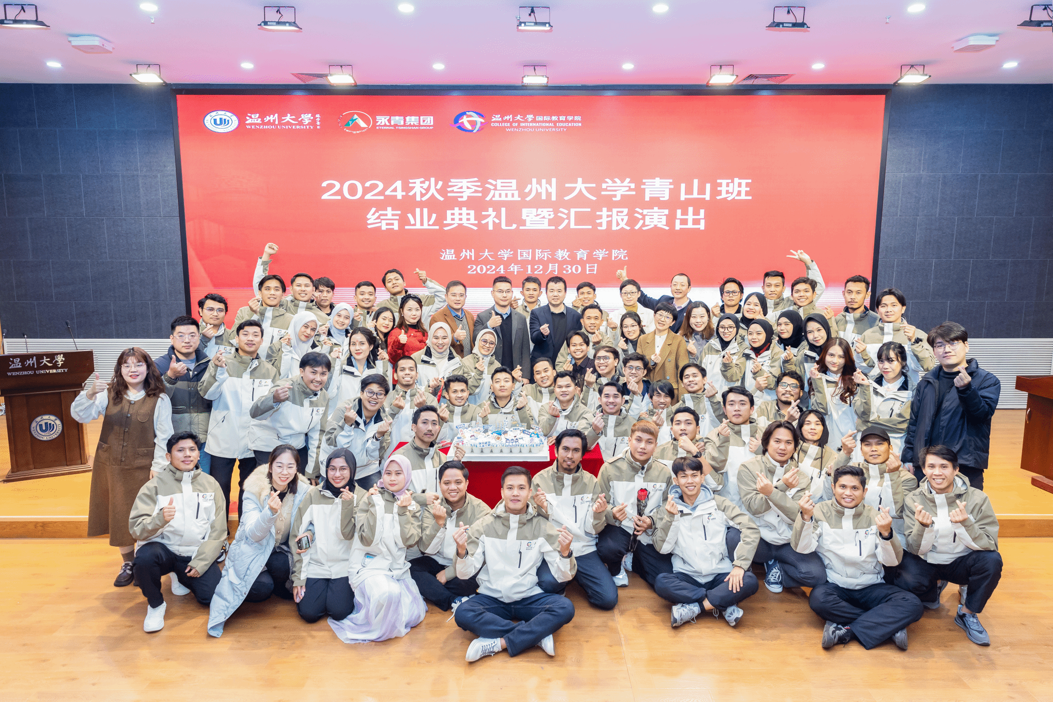 12月30日下午,第三期“温大青山班”结业典礼在太阳集团tyc539南校区岩松堂步青厅举行。青山实业永青集团福建代表处人力资源部经理王胤、综合管理部副经理朱振涛、人事专员张杨、太阳集团tyc539国际交流与合作处处长陈慧、太阳集团tyc539党支部书记林爱菊、院长夏远志、国际交流与合作处副处长熊勇以及青山班全体任课老师、班主任、管理人员和学员们共同出席典礼。结业典礼由青山班学员林文祥和林小雨担任主持人。