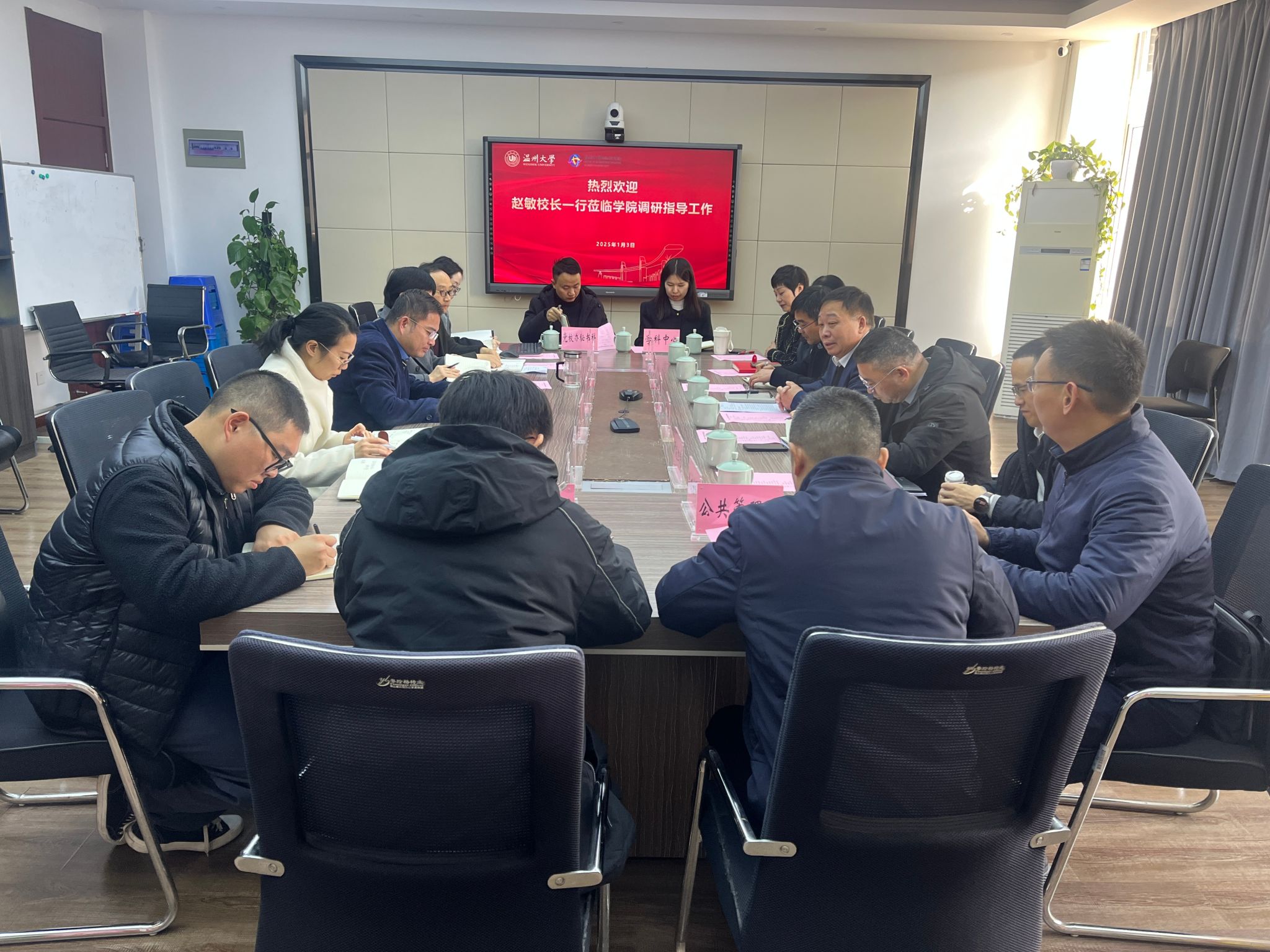 2025年1月3日下午,赵敏校长率领党校办、人事处、研究生院、教务处、人文社科处、计财处、国资处、公共管理处及学科建设中心等部门负责人,亲临太阳集团tyc539进行工作调研与指导。太阳集团tyc539全体领导班子成员及各科室负责人参加了此次座谈交流会。
