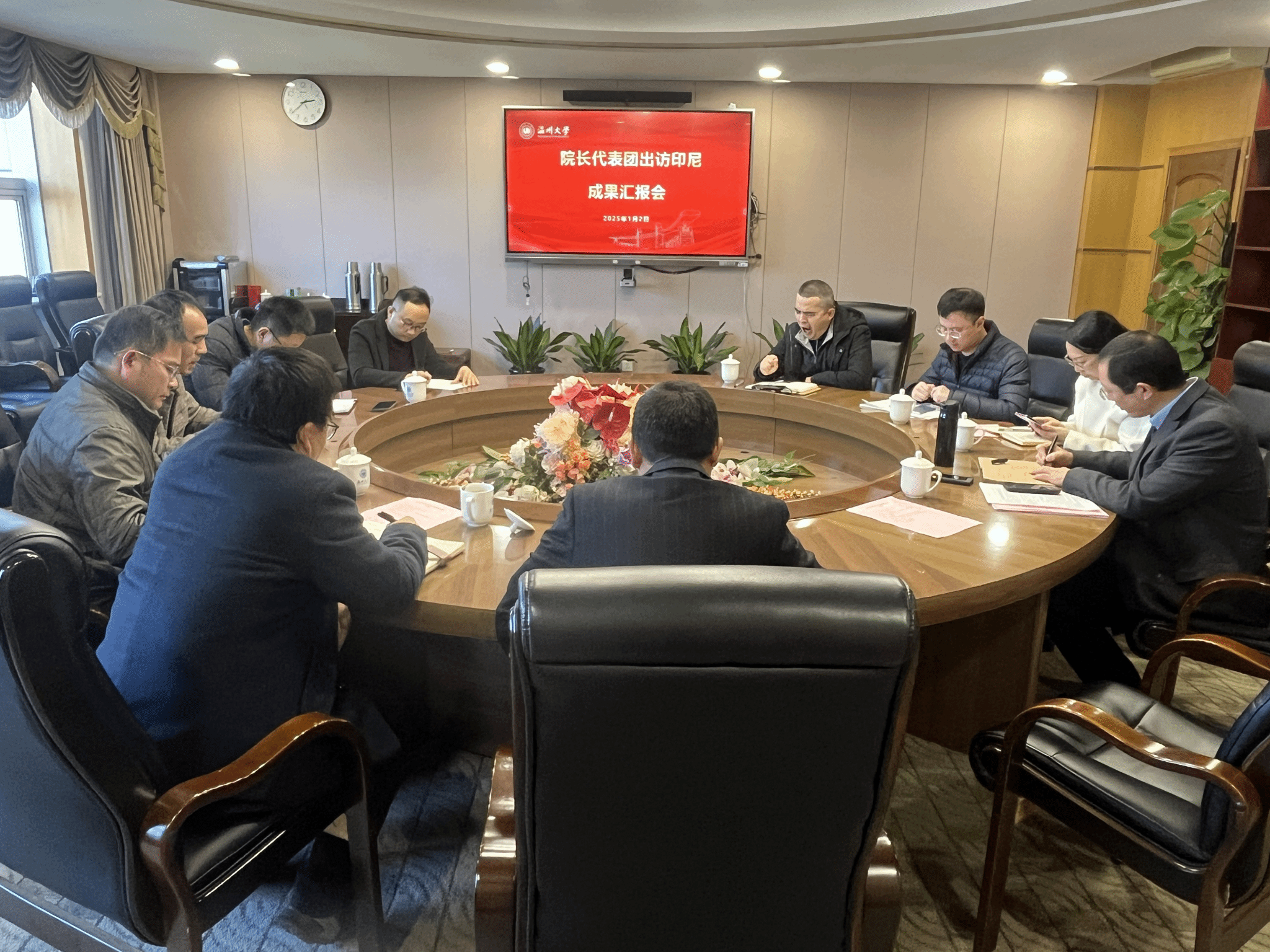 2025年1月2日下午,太阳集团tyc539院长代表团出访印尼成果汇报会在南校行政楼918会议室召开。副校长王舜、国际交流与合作处副处长熊勇、院长代表团成员以及太阳集团tyc539相关工作人员出席会议。