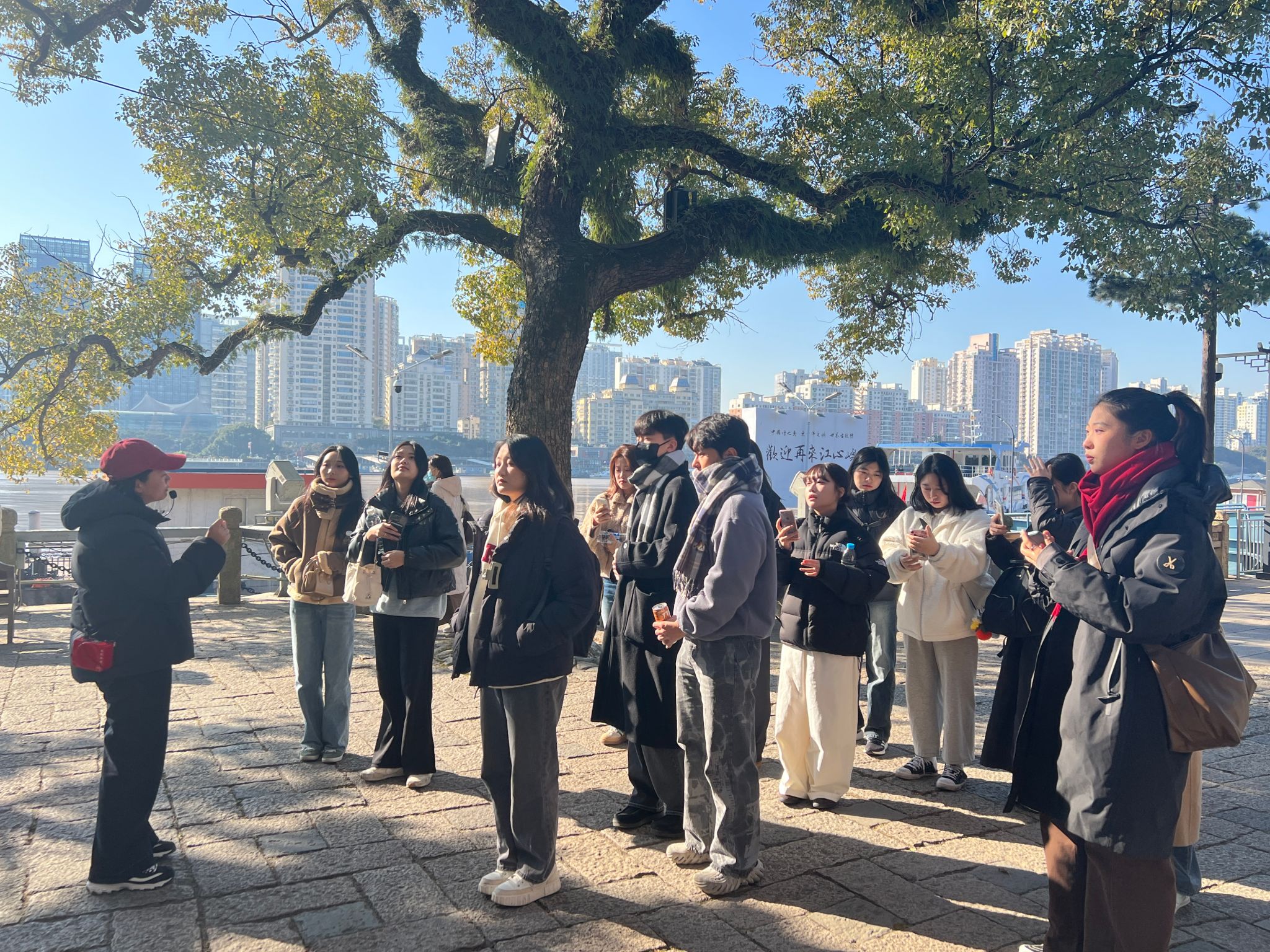 1月11日的第一站是中国四大名屿之一的江心屿,被称为“瓯江蓬莱”。江亭有孤屿,千载迹犹存,韩国学生被屿内各式各样的中式建筑所吸引,赞叹不绝。在讲解员的介绍中,学生们漫步于亭台楼榭之间,感受温州历史文化的沉淀,聆听属于瓯越大地的故事。