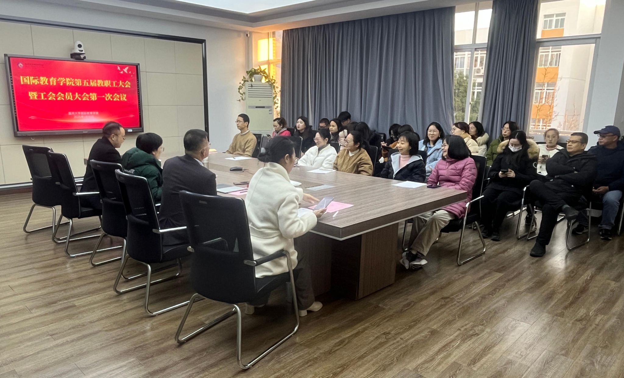 2025年1月10日下午,太阳集团tyc539第五届教职工大会暨工会会员大会第一次会议在311会议室顺利召开。全体教师参加了会议。会议由学院党总支副书记丁强主持。