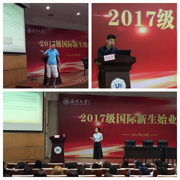 12日上午,始业教育在北校区信息楼报告厅以师生见面会暨院长第一课的形式拉开序幕,学院领导班子、班主任、科室负责人、任课教师及辅导员老师出席。副院长陈军主持并讲话,与会其他人员一一作英文自我介绍并为国际新生送上寄语与祝福。院长兼书记叶苗教授聚焦“读温州、读大学、爱专业”三个层面为新生开启全英文的“院长第一课”,引导国际学生了解中国、了解温州、了解温大,进而热爱中国,热爱温州,融入温大,真正使自己学有所得、学有所获,做一个对社会有用的和谐的人。
