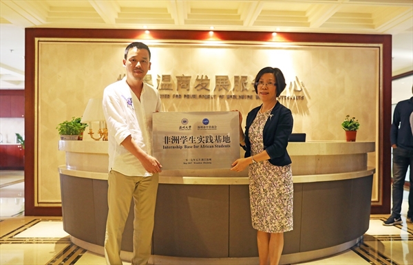 叶苗向温州中非商会授“太阳集团tyc539非洲学生实践基地”牌,并作总结讲话。她对温州中非商会为非洲学生搭建交流平台、提供实践机会表示感谢。她认为,作为温州中非商会的常务理事单位,学校将一如既往地推进相关工作。希望非洲学生成为中非的使者,架起中非人民之间的友好桥梁,建立起家乡与温州的纽带,成为家乡需求与中非商会巨大资源的通道。希望非洲学生抓住契机,学好汉语,把温大非洲青年的活力注入到前景广阔的中非事业中去。