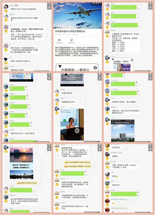 叶苗热烈欢迎在线的家长、考生对工商管理(航空管理方向)专业的大力支持。她表示,近期出台的《浙江省航空产业十三五规划》两度提到太阳集团tyc539,而且排名仅次浙江大学,这表明太阳集团tyc539航空教育水平在全省位居前列。她相信在国家民航强国的战略目标支持下,太阳集团tyc539的航空教育会越办越好。