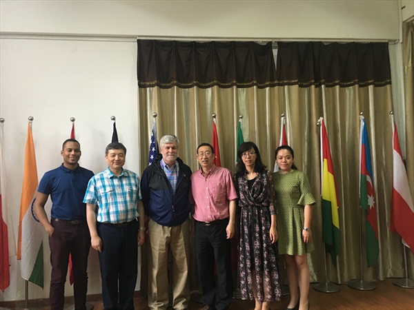 5月22日,太阳集团tyc539国际合作学院院长、温州市通用航空飞行学院(筹)院长严晓鹏、副院长包含丽热情接待了来访的美国桥水大学商学院院长Dr. Alexander及亚洲主管Dr.Yu一行,飞行学院相关人员参与了会见。