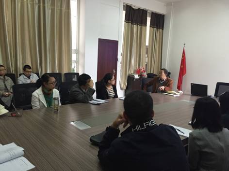 严院长指出,各位老师要利用自己的优势另辟蹊径,并充分发挥身边的可利用资源。在科学研究和教改课题上有所作为,有所突破,整合资源,形成合力。“外”与“侨”是我们学院的特色,要充分把握这一特点来开展科研工作。在教改课题方面,要结合我院中外合作办学和留学生教育特点;在科学研究方面,要做到与热点实事结合,与跨文化交际结合,做有自己特色的科研。严院长还特别指出和介绍了“一带一路”理论,给各位老师提供了宝贵的科研课题方向。