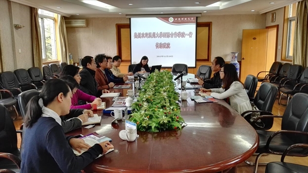 11月19日上午,云南财经大学国际工商学院院长刘尔思、副院长段云龙、党委副书记杨秀伟偕同相关科室负责人员与我院调研团队进行了座谈,国际工商学院党委副书记杨秀伟向我们详细介绍了该院中外合作办学项目的发展历史、特色品牌和教学管理经验等,随后双方在学分管理、师资建设、课程设计、教学监督和项目基地建设等方面作了有益的交流,双方期盼今后两校两院在中外合作办学方面进一步加强交流与合作,进一步提升两校的中外合作办学水平。