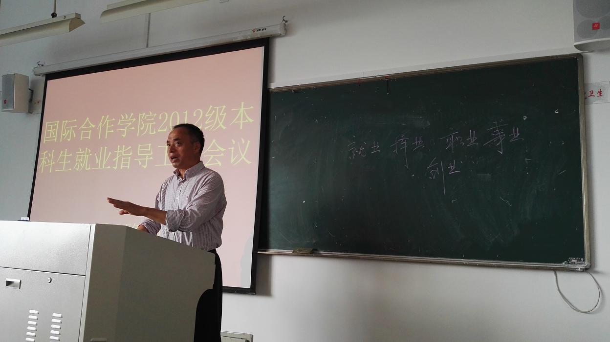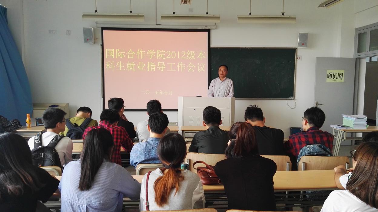 10月22日下午14点,国际合作学院2015届本科毕业生就业指导大会在北校3号楼508教室举行,56名市场营销专业毕业生和学生科辅导员老师参加了会议,学院党总支书记朱建平出席了本次会议。