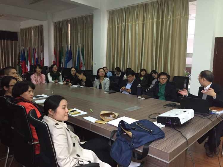 严院长在回顾学院“十二五”期间人才培养国际化、学科建设国际化、师资队伍建设国际化等各项工作成果的基础上,介绍了高等教育国际化理念及国家的相关政策,并结合海内外几所高校国际化发展的路径和经验,传达了学院领导班子关于“十三五”的发展规划思路:要以国际认证为核心提高中外合作办学质量;以华人华侨研究和世界温州人研究为特色打造国际级智库;筹建华侨商学院,在海外设立教育点,实现我校教育资源走出去;引进国外优质教育资源,筹建非法人机构中美航空学院和中英硕士项目,提升办学层次。严院长强调在“十三五”规划中强调我院要积极做好“一带一路”工作,加强区域国别研究。